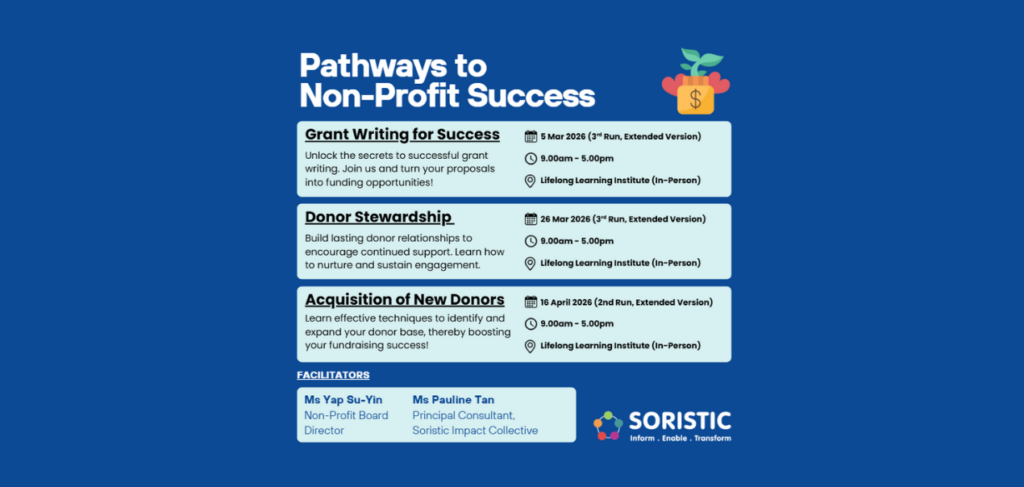 a) Grant Writing for Success (3rd run) – Improved and Extended Version (9am to 5pm) This workshop is designed to help you craft compelling grant applications that highlight your impact and meet the expectations of grantmakers. Workshop Highlights: Overview of Grant Cycles Deciphering Grant Makers Craft Compelling Proposals Hands-on Practice & Feedback b) Donor Stewardship […]