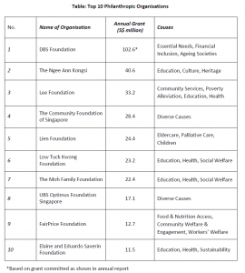 The fifth biggest giver is Lien Foundation, a family foundation, which disbursed $24.4 million to charities working in areas including palliative care, eldercare and senior’s mental wellbeing.